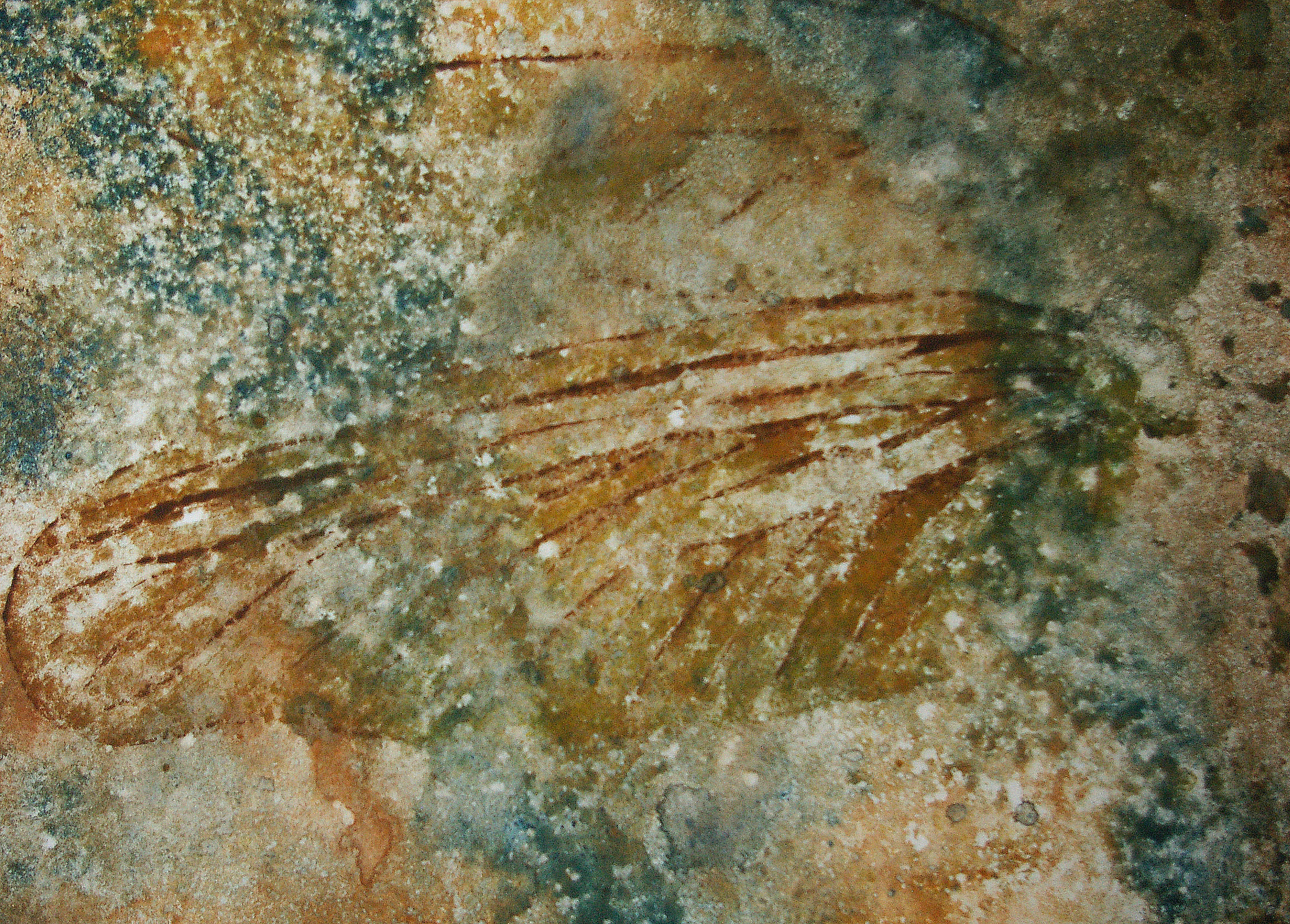 This is from a series of monoprints called Rock Paper Rock, which were created by mixing water soluble oil paint, painting it on plexiglass and printing the image on rag paper. The size is roughly 19 3/4 by 25 3/4 inches.