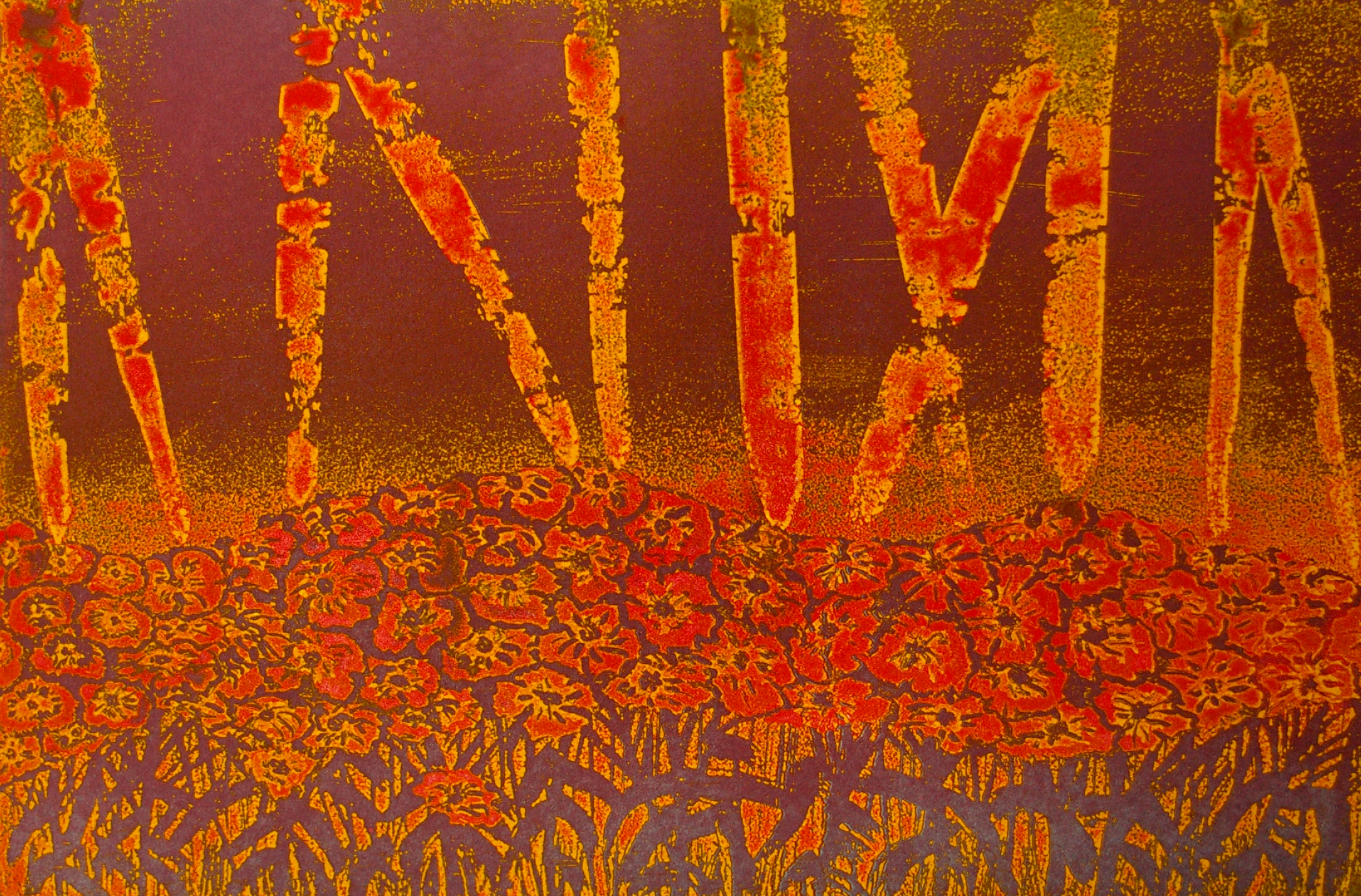 This is from a series of zinc plate etchings called Survivors in a Social Desert. The artist statement may be found on the catalogue page. The size is roughly 19 3/4 by 25 3/4 inches. They are printed on BFK Rives paper. This image was printed in an edition of 8.