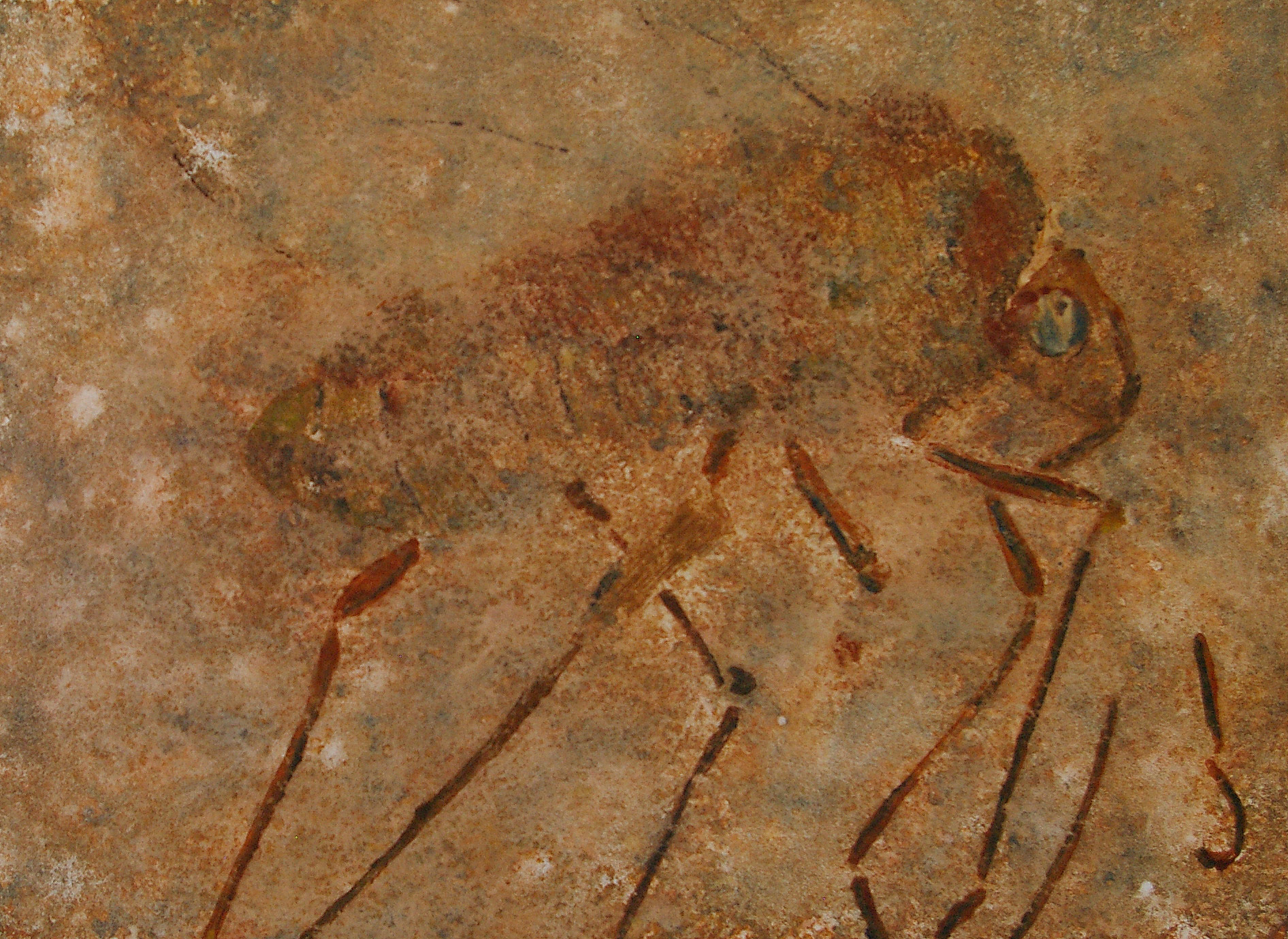 This is from a series of monoprints called Rock Paper Rock, which were created by mixing water soluble oil paint, painting it on plexiglass and printing the image on rag paper. The size is roughly 19 3/4 by 25 3/4 inches.