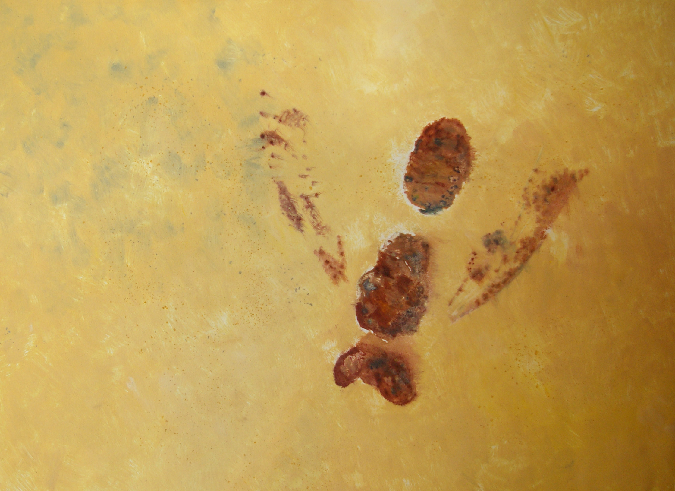 This is from a series of monoprints called Rock Paper Rock, which were created by mixing water soluble oil paint, painting it on plexiglass and printing the image on rag paper. The size is roughly 19 3/4 by 25 3/4 inches.