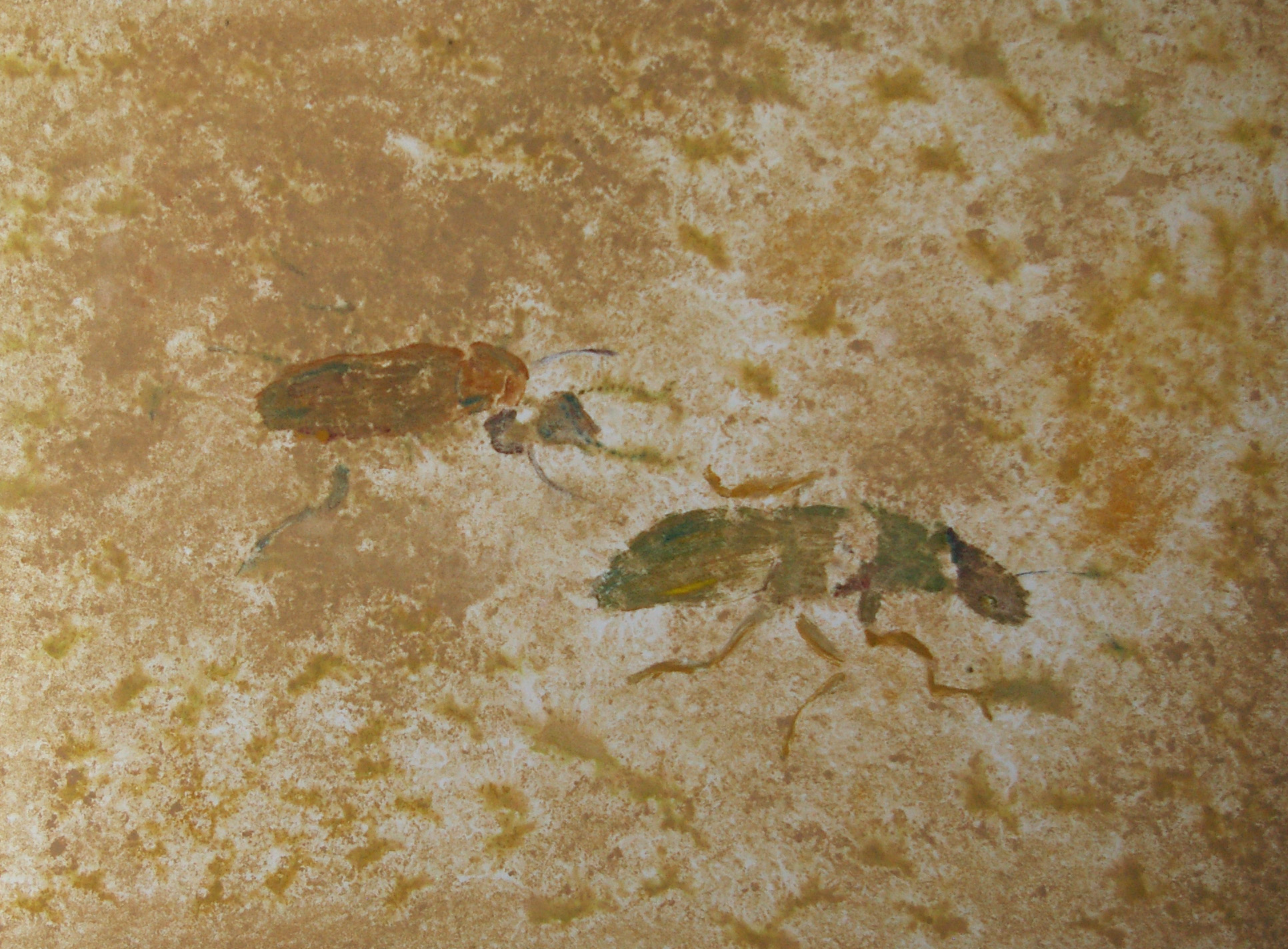 This is from a series of monoprints called Rock Paper Rock, which were created by mixing water soluble oil paint, painting it on plexiglass and printing the image on rag paper. The size is roughly 19 3/4 by 25 3/4 inches.