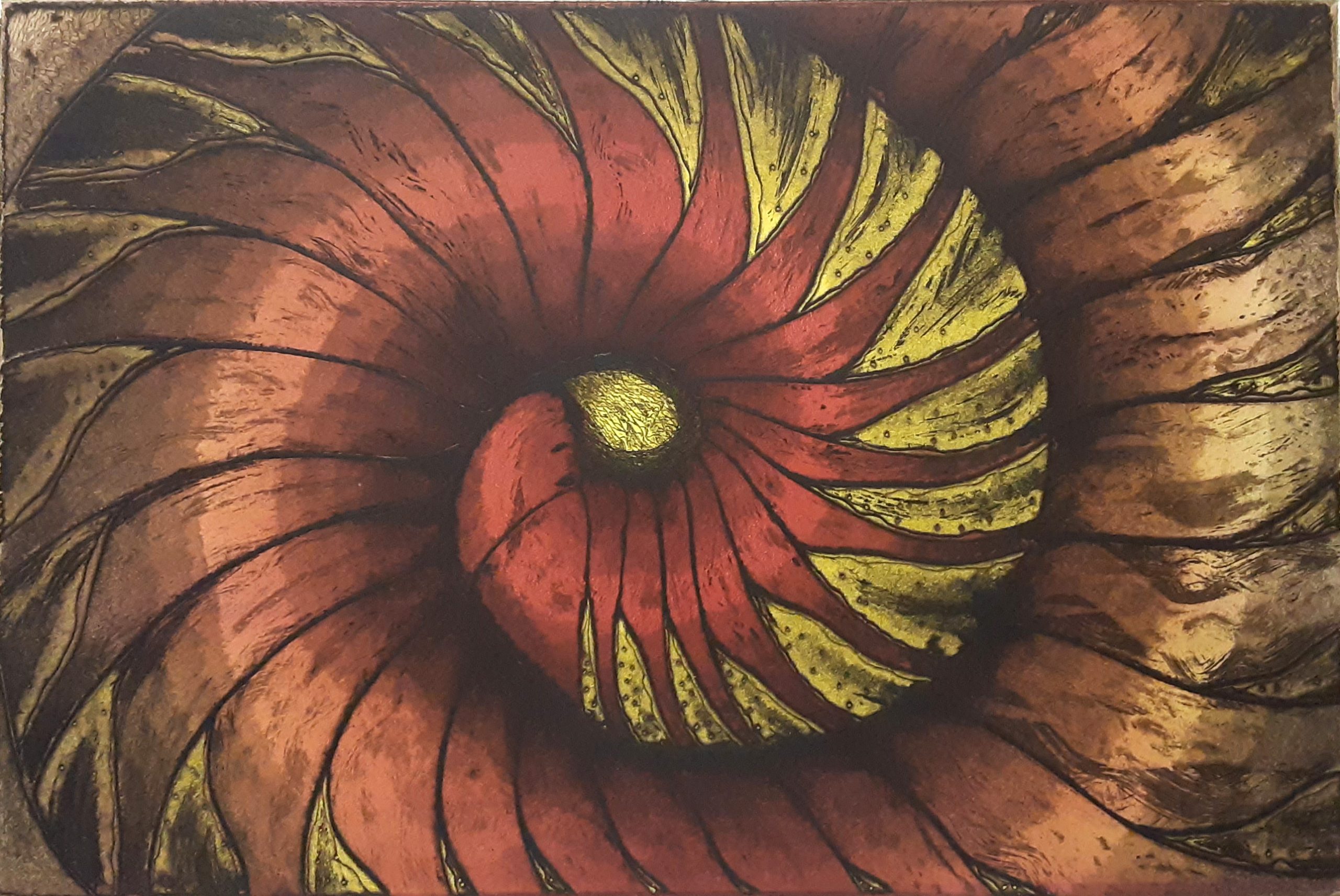 This copper plate etching print was done on rag paper measuring 19.5×25.5 inches. The print itself measures 11.75×17.5 inches. It is from the series called Higher Ground. This print was never editioned. This is an artist proof #3.