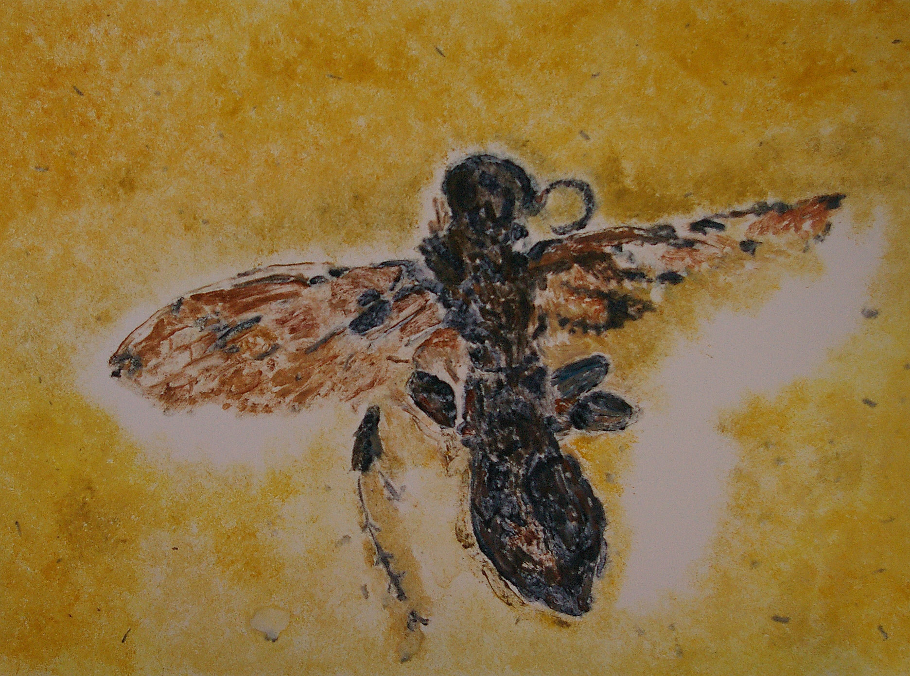 This is from a series of monoprints called Rock Paper Rock, which were created by mixing water soluble oil paint, painting it on plexiglass and printing the image on rag paper. The size is roughly 19 3/4 by 25 3/4 inches.