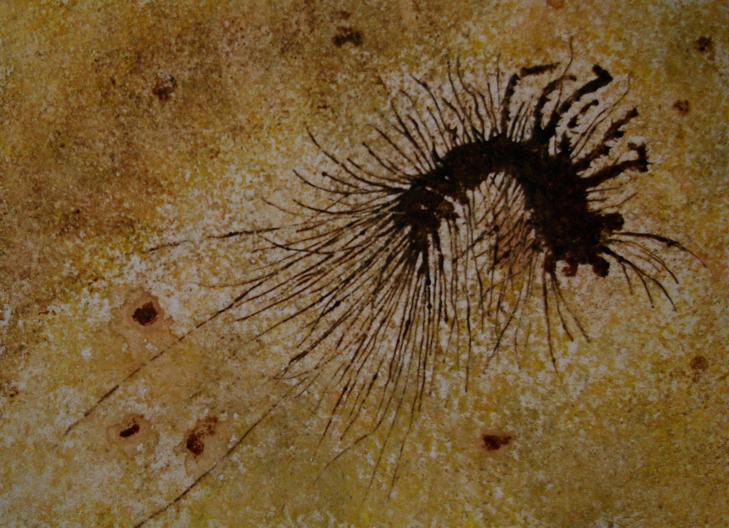 This is from a series of monoprints called Rock Paper Rock, which were created by mixing water soluble oil paint, painting it on plexiglass and printing the image on rag paper. The size is roughly 19 3/4 by 25 3/4 inches.