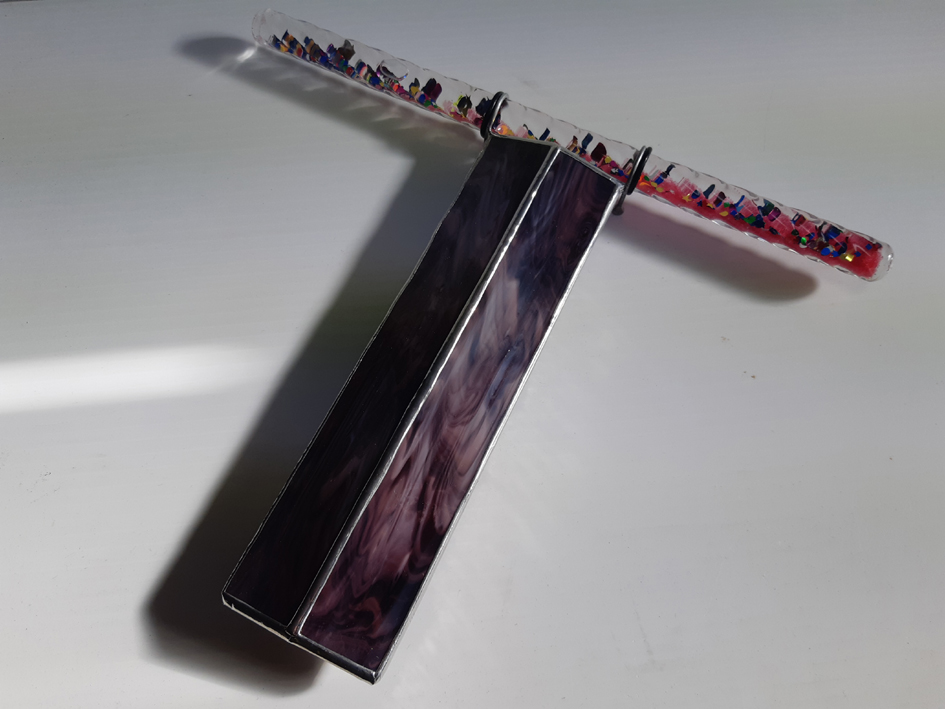 “The Wand-o-scope is another elongated diamond shape… all right sides with two loops which hold and oil and particle filled wand. What I like to do is turn the Kaleidoscope from one end to the other so that as you charge the wand after a minute or so you have particles going upwards and particles going downwards at the same time so that when you do look through it you see a bunch of stuff going one way and a bunch of stuff going the other way in front of the optic field and it’s really quite beautiful. Wand-o -scopes are available with various colours of Wands to choose from they are made in a small or large and you can also get a spiral wand or a plain one, which is this plastic has no delineations on it,” John Cooper.