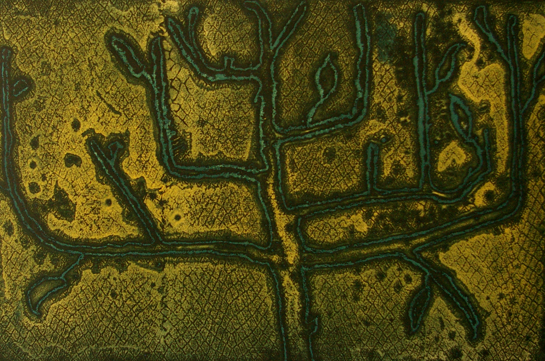 This is from a series of zinc plate etchings called Survivors in a Social Desert. The artist statement may be found on the catalogue page. The size is roughly 19 3/4 by 25 3/4 inches. They are printed on BFK Rives paper. This image was never editioned. The Artist Proof is the only item for sale.