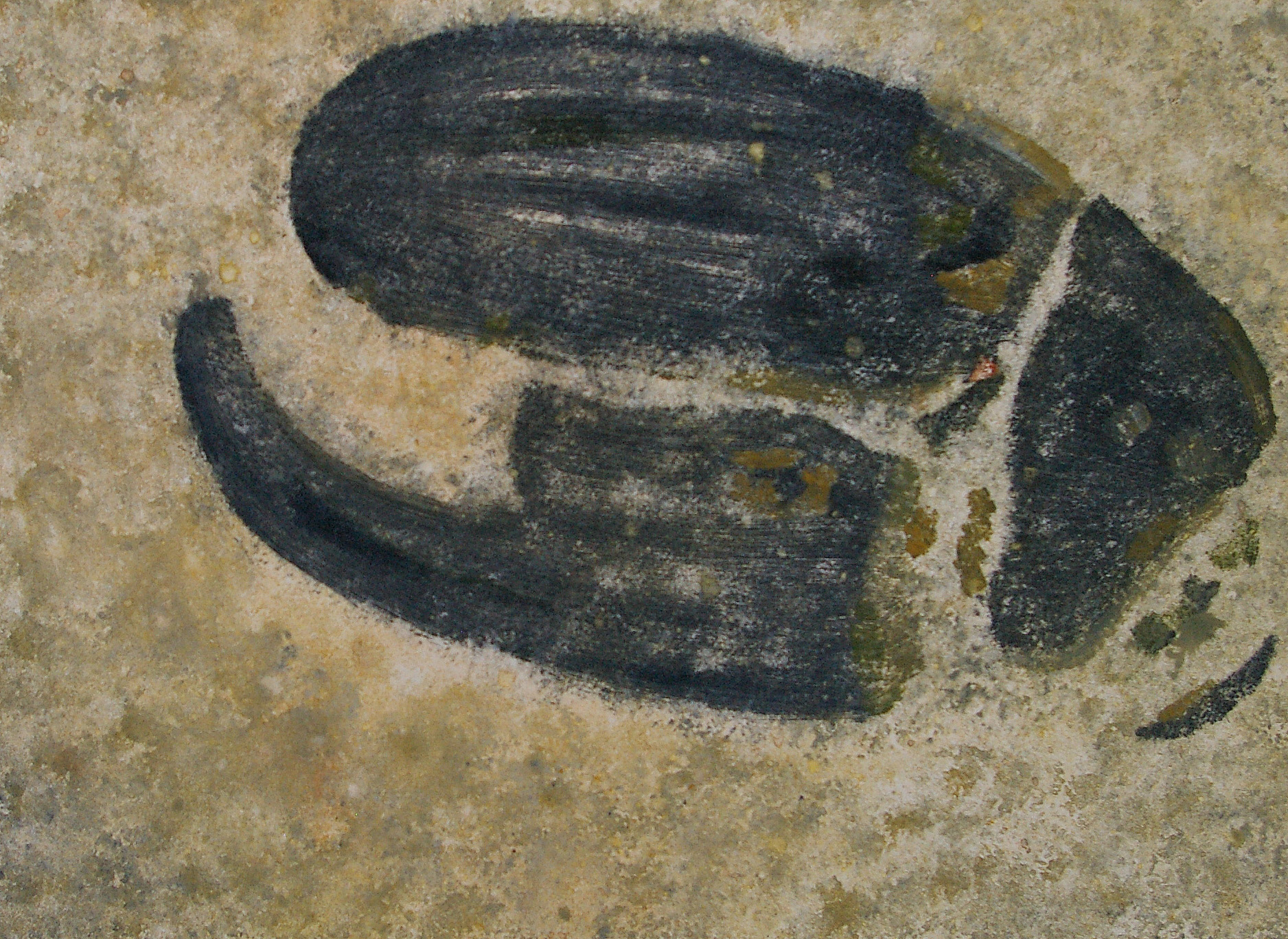 This is from a series of monoprints called Rock Paper Rock, which were created by mixing water soluble oil paint, painting it on plexiglass and printing the image on rag paper. The size is roughly 19 3/4 by 25 3/4 inches.