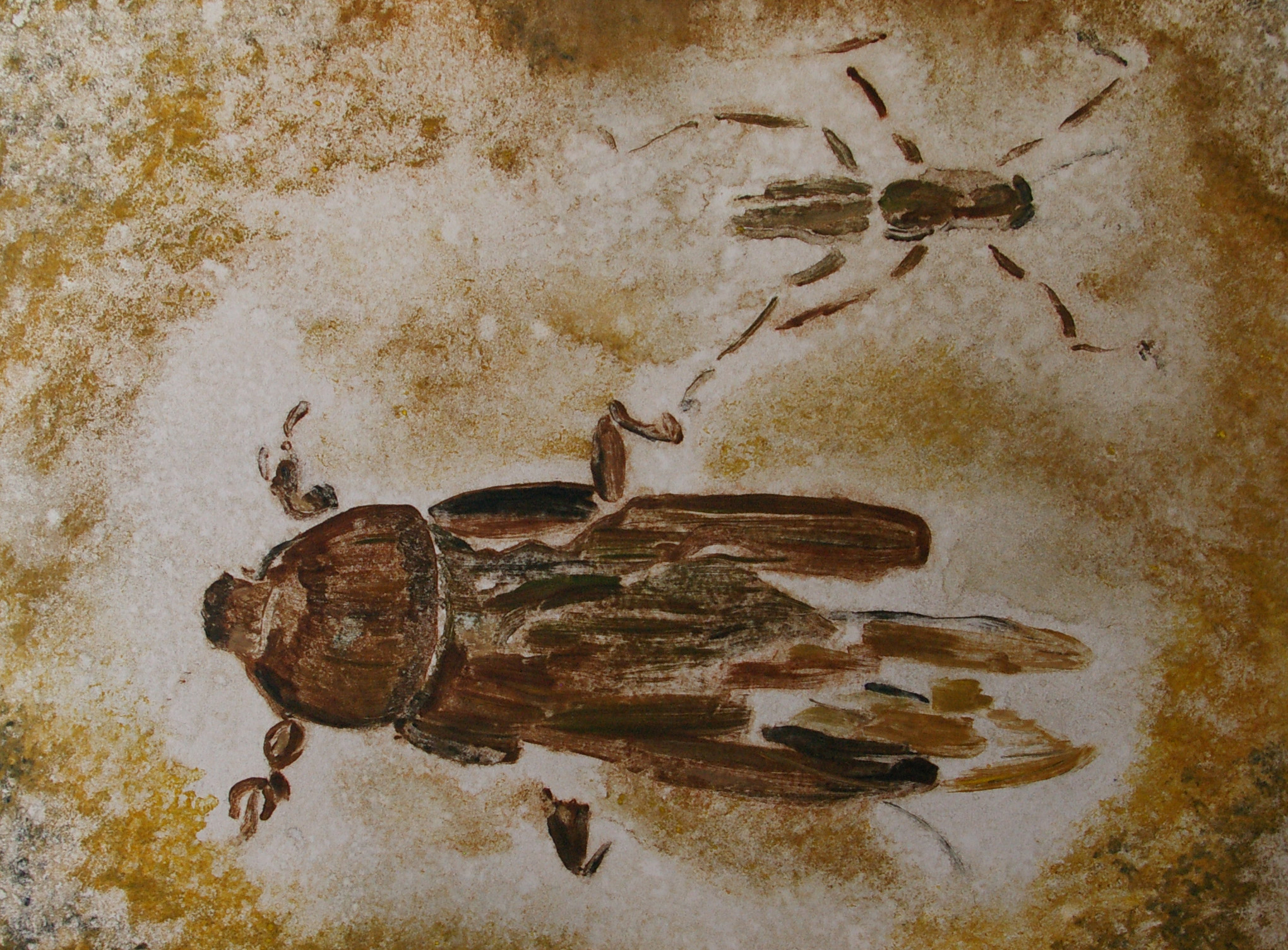 This is from a series of monoprints called Rock Paper Rock, which were created by mixing water soluble oil paint, painting it on plexiglass and printing the image on rag paper. The size is roughly 19 3/4 by 25 3/4 inches.