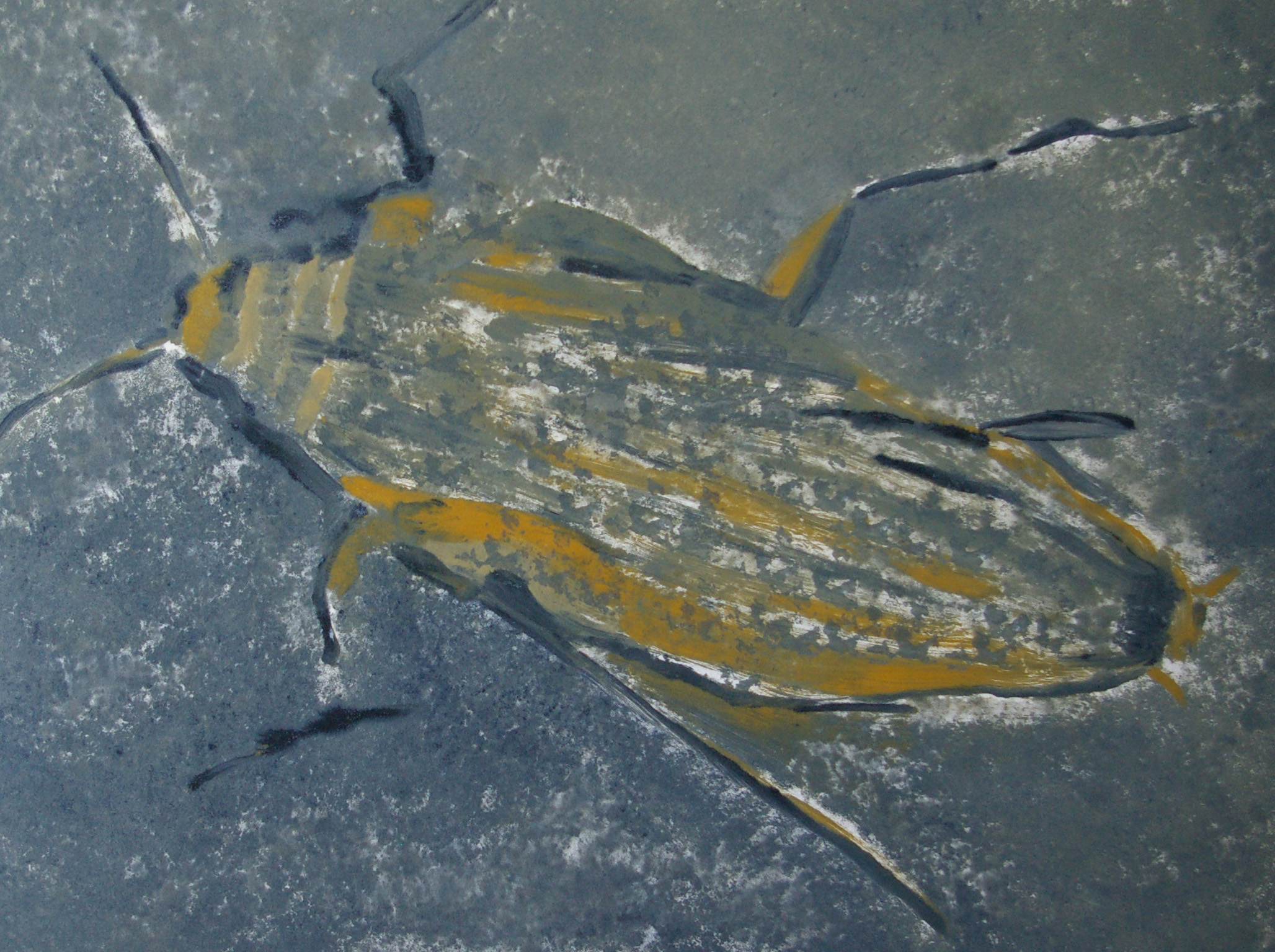 This is from a series of monoprints called Rock Paper Rock, which were created by mixing water soluble oil paint, painting it on plexiglass and printing the image on rag paper. The size is roughly 19 3/4 by 25 3/4 inches.
